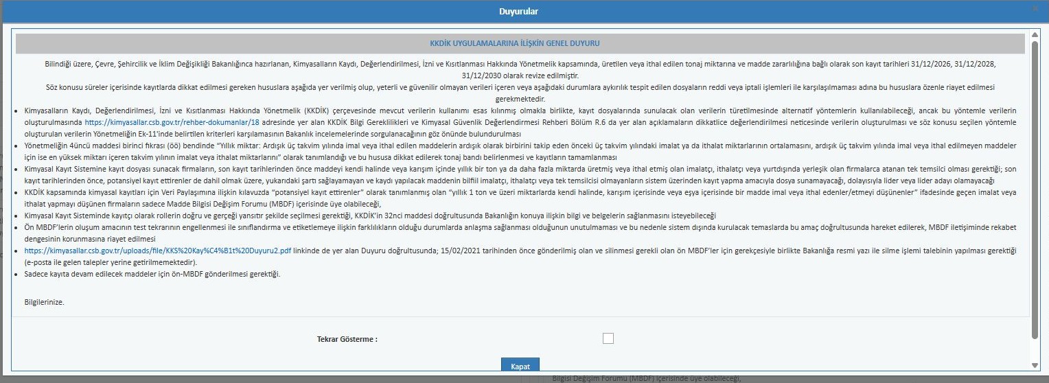 https://kimyasallar.csb.gov.tr/uploads/file/KKS%20Kayıt%20Duyuru2.pdf linkinden duyuruya ulaşılabilir.
